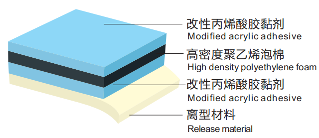 贺兴HX -A系列防水泡棉双面胶是以高密度聚乙烯泡棉为基材 ,双面涂以改性丙烯酸胶黏剂而成 ,泡棉基 材拉伸性能强 ,是一款功能型的泡棉双面胶带 ,主要应用于汽车 、 电子 、数码 、家用电器等行业密封 、 粘接。 常规生产0. 15 - 1. 5 mm ,其他规格可按需定制。